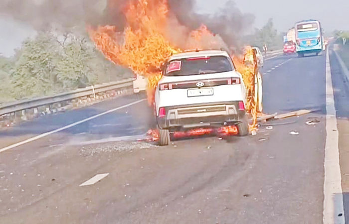 નડિયાદ : નડિયાદ નજીકથી પસાર થતા વડોદરા-અમદાવાદ એક્સપ્રેસ હાઈવે પરથી પસાર થતી એક કાર આગળ જતી ટ્રક પાછળ ઘૂસી જતા કારમાં આગ ભભૂકી ઉઠી હતી. સદનસીબે કારમાં સવાર છોટાઉદેપુર લગ્નમાંથી પરત જતા પાંચ વ્યક્તિઓનો આબાદ બચાવ થયો હતો. આ બનાવની જાણ થતા જ નડિયાદ ફાયર બ્રિગેડની ટીમે સ્થળ પર દોડી આવી પાણીનો મારો ચલાવી આગ પર કાબૂ મેળવ્યો હતો.