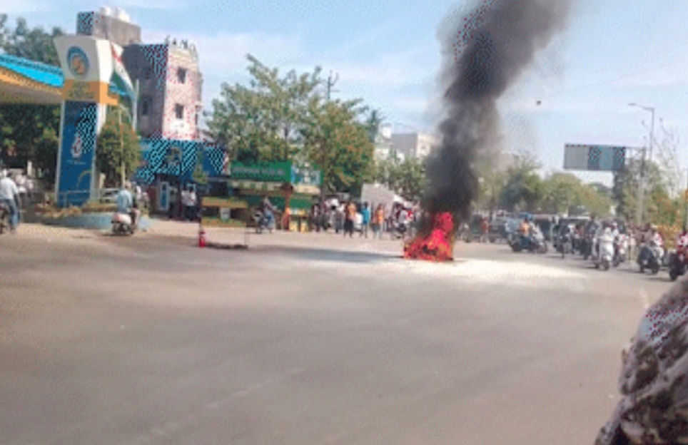 સરદાર એસ્ટેટ પાસેના પંપ ઉપર આકાશ નામના યુવકે બાઇકમાં ટાંકી ફુલ કરાવી હતી.ત્યારબાદ થોડે આગળ જઇને બાઇક સ્ટાર્ટ કરતાં જ ભડકો થયો હતો.જેથી તેણે તરત જ બાઇક સ્ટેન્ડ પર ચડાવી ખસી ગયો હતો.