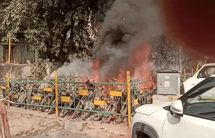 Fire Broke out in Khadia Police station Parking: અમદાવાદ શહેરના ખાડિયા પોલીસ સ્ટેશનમાં શુક્રવારે(6 ફેબ્રુઆરી) બપોરે અચાનક આગ ફાટી નીકળતા દોડધામ મચી ગઈ હતી. પોલીસ સ્ટેશનના ખુલ્લા પાર્કિંગમાં રાખવામાં આવેલા વાહનોમાં અંદાજે 25 જેટલી મોટરસાયકલો આ આગની ચપેટમાં આવી ગઈ હતી.