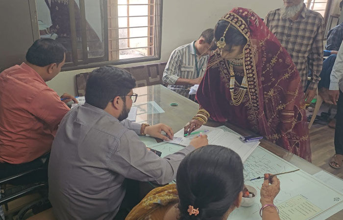 જામનગરના ગુલાબનગર વિસ્તારમાં રહેતાં મીરા પરમાર નામની યુવતીએ પોતાના જીવનના મહત્વપૂર્ણ પ્રસંગ લગ્ન પહેલાં મતદાનને પ્રાથમિકતા આપી લોકશાહી પ્રત્યેની જાગૃતિ અને જવાબદારીનું ઉત્તમ ઉદાહરણ પૂરૂ પાડયું છે. યુવતીએ પોતાના લગ્નના શણગારમાં મતદાન મથક પર પહોંચી અને પોતાના મતાધિકારનો ઉપયોગ કર્યો હતો.વાંકાનેર તાલુકાના ચંદ્રપુર ગામમાં રહેતી શાહનુર કાસમભાઇ ગઢવારા નામની દીકરીએ પોતાના જીવનના સૌથી મહત્વના દિવસ એટલે કે નિકાહના થોડા સમય પૂર્વે જ મતદાન મથકે પહોંચી મતાધિકારનો ઉપયોગ કરીને લોકશાહી પ્રત્યેની પોતાની અતૂટ નિષ્ઠા પ્રદર્શિત કરી છે. લગ્નના પહેરવેશમાં સજ્જ દુલ્હનને મતદાન મથકે જોઇને ત્યાં ઉપસ્થિત અન્ય મતદારો અને ચૂંટણી સ્ટાફમાં પણ આશ્ચર્ય અને આનંદની લાગણી પ્રસરી હતી.ચોટીલા શહેરમાં રહેતા શીતલબા ઝાલાએપોતાના લગ્નની વિધિઓ શરૃ થાય તે પહેલાં મતાધિકારનો ઉપયોગ કરવાનું નક્કી કર્યું હતું. તેઓ લાલ ચુંદડી અને સોળ શણગાર સજીને સીધા મતદાન મથકે પહોંચ્યા હતા, જ્યાં તેમણે પોતાનો અમૂલ્ય મત આપી લોકશાહીના પર્વની ઉજવણી કરી હતી. જેતપુરના ડેડરવા ગામે અવનીબેન દૂધાત્રાએ પોતાના લગ્ન પહેલા મતદાન મથકે જઇ મતદાન કર્યું હતું.