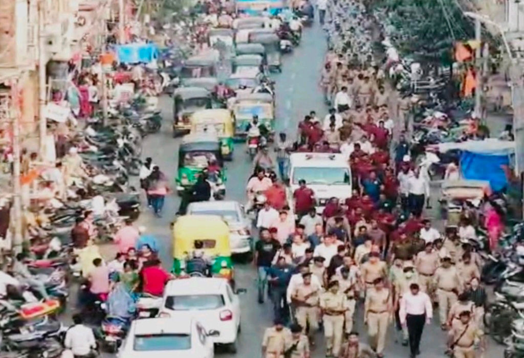 વડોદરાઃ આગામી રવિવારે મહાશિવરાત્રી નિમિત્તે નીકળનારી શિવજી કી સવારીના રૃટ પર આજે સશસ્ત્ર પોલીસ દ્વારા ફૂટ પેટ્રોલિંગ કરવામાં આવ્યું હતું.