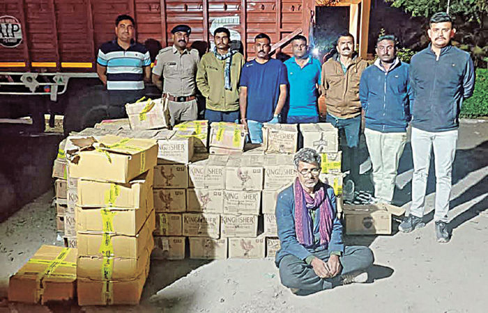 રમિયાન બાતમીવાળી આઇશર ગાડી (આરજે-૧૬-જીએ-૫૨૪૪) આવતા રોકી તપાસ કરતા ગાડીના પાછળના ભાગે બટાકાના કોથળા નીચેના ભાગમાં લોખંડની પ્લેટો લગાવી અલગ અલગ ખાનામાં સંતાડેલ વિદેશી દારૂ અને બિયરની નાની મોટી ૧,૪૫૫ બોટલ (કિં.રૂ.૬,૫૦, ૯૮૦) મળી આવી હતી.