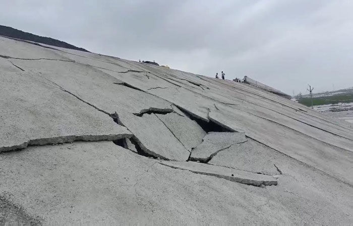 ગાબડાં અને તિરાડો પડતા નિર્માણ કાર્યની ગુણવત્તા પર ગંભીર સવાલો ઊભા થયા છે. મોટી
