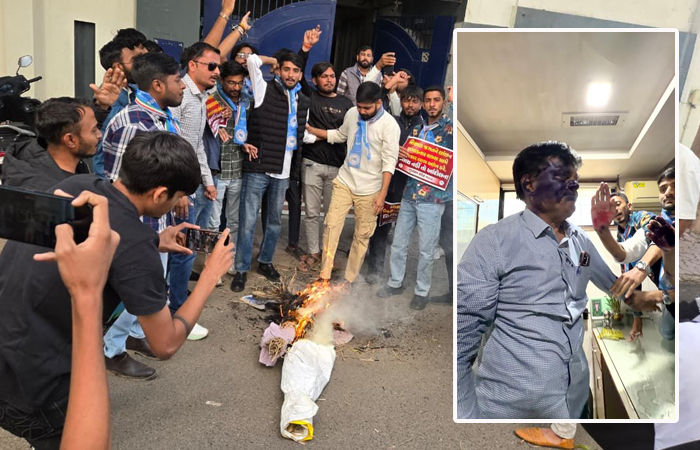 Rajkot news : રાજકોટના શિક્ષણ જગતમાં ખળભળાટ મચાવનારી એક ઘટનામાં, સૌરાષ્ટ્ર યુનિવર્સિટીના પૂર્વ કુલપતિ ગિરીશ ભીમાણી પર વિદ્યાર્થિનીઓની છેડતીના ગંભીર આરોપો લાગ્યા છે. આ મામલે ગુરુવારે ગુજરાત પ્રદેશ NSUI દ્વારા આક્રમક વિરોધ પ્રદર્શન કરવામાં આવ્યું હતું, જે દરમિયાન કાર્યકરોએ ભીમાણીનું મોઢું શાહીથી કાળું કરી દીધું હતું. જોકે, આ ગંભીર ઘટનામાં હજુ સુધી કોઈ પોલીસ ફરિયાદ નોંધાઈ નથી.