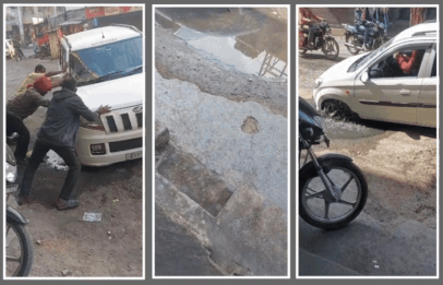 ગોધરા શહેરમાં છેલ્લા એક વર્ષમાં બનાવવામાં આવેલા નવા રસ્તાઓની હાલત વરસાદ બાદ કથળી ગઈ છે. રસ્તાઓ પર મોટા ખાડા પડી જતાં શહેરીજનો અકસ્માતનો ભોગ બની રહ્યા છે. આ દરમિયાન ભાગોળ વિસ્તારમાં મસમોટો ખાડો વાહનચાલકો માટે માથાનો દુ:ખાવો બન્યો છે. આ ખાડાને લઈને નગરપાલિકાને વારંવાર રજૂઆત કરવા છતાં કોઈ પગલાં લેવાયા નથી. જેના કરાણે સ્થાનિકો અને વાહનચાલકોમાં ભારે રોષ જોવા મળી રહ્યો છે.