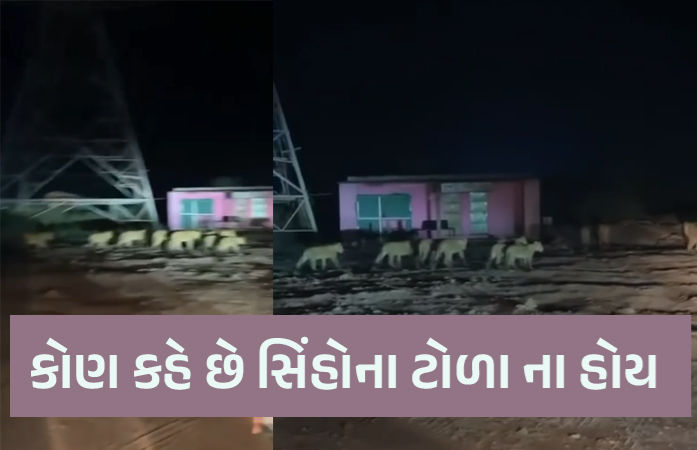 Lion Family in Gir: સૌરાષ્ટ્ર-અમરેલી પંથકમાં અવાર-નવાર સિંહો આવી ચડતા હોય છે. ઘણીવાર સોશિયલ મીડિયા પર આના સીસીટીવી ફૂટેજ અને વીડિયો વાયરલ થતા હોય છે. સૌરાષ્ટ્રના ગ્રામ્ય વિસ્તારોમાં ઘણીવાર એકાદ-બે સિંહો શિકારની શોધમાં આવી ચડતા હોય છે, ક્યારે સ્થાનિકો પર હુમલાના કિસ્સા પણ સામે આવે છે. ત્યારે હાલમાં અમરેલી-રાજુલાના કોવાયા ગામમાં એક સાથે 12 સાવજોનું ટોળું શિકારની શોધમાં બહાર આવ્યાનો વીડિયો વાયરલ થયો છે. આમ કહેવાય છે કે સિંહોના ટોળા ના હોય... પરંતુ આ વીડિયો જોયા બાદ ગુજરાતી કહેવત પણ ખોટી પુરવાર થઈ રહી હોય એવું લાગી રહ્યું છે.