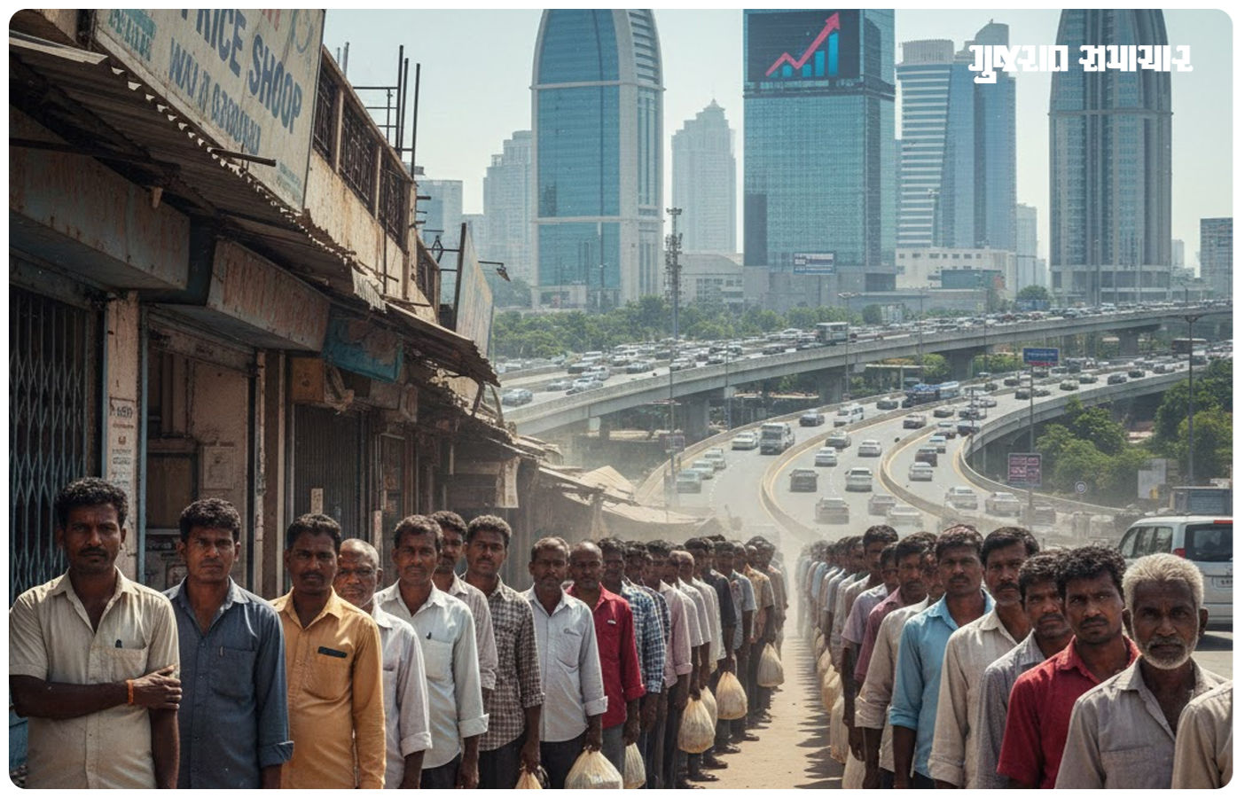વાઇબ્રન્ટ ગુજરાતમાં લોકોની માથાદીઠ આવક વધી છે. રોજગારીની ભરપુર તકો રહેલી છે. ઉદ્યોગ માટે ગુજરાત શ્રેષ્ઠ સ્ટેટ બન્યુ છે. આવા તકીયાકલામ થકી ઘુમ પ્રચાર કરવામાં આવી રહ્યો છે. વાસ્તવમાં ગરીબી રેખા નીચે જીવતા કુટુંબોની સંખ્યા વધી રહી છે. આ જોતાં અન્ન પુરવઠા વિભાગે રેશનકાર્ડ રદ કરવાની મુહિમ ચલાવી હોવા છતાંય મફત અને રાહતદરે અનાજ લેનારાંની સંખ્યા પણ ઓછી થઇ નથી. ખુદ કેન્દ્રીય અન્ન પુરવઠા વિભાગે જ સંસદમાં આંકડા રજૂ કર્યા કે, ગુજરાતમાં આજની તારીખે 3.65 કરોડ લોકો મફત અનાજ લે છે. વર્ષ 2021-22 માં 3.41 કરોડ લોકોએ મફત અનાજ મેળવ્યુ હતું. તે સંખ્યા વધીને વર્ષ 202526 માં 3.65 કરોડ સુધી પહોંચી છે. આમ લોકોની આર્થિક સ્થિતી સુધરી છે તે વાતનો પરપોટો ફૂટ્યો છે.