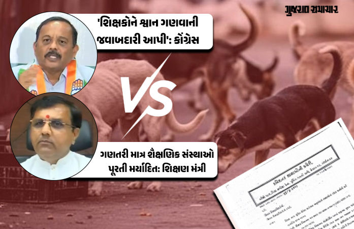 Teachers Count Dogs Controversy: ગુજરાતમાં SIRની કામગીરીમાંથી હજુ તો શૈક્ષણિક સ્ટાફ છૂટો થયો નથી ત્યાં તો ફરી એક પરિપત્ર કરી દેવાતા વિવાદનું વંટોળ ઊભું થયું છે. હવે સુપ્રીમ કોર્ટના આદેશને ટાંકીને રાજ્યની તમામ શૈક્ષણિક સંસ્થાઓમાં રહેલા શ્વાનોનો રિપોર્ટ સોંપવા જિલ્લા શિક્ષણ અધિકારીની કચેરીએ પરિપત્ર જાહેર કર્યો છે. જેમાં શાળાના કેમ્પસની અંદર અને આસપાસ કેટલા શ્વાન છે તેની વિગતો જણાવવા સૂચન કરવામાં આવ્યું છે. કોંગ્રેસે દાવો કર્યો છે કે શિક્ષણ નિયામકે પરિપત્ર કરી શિક્ષકોને શ્વાન ગણવાની જવાબદારી આપી છે. જો કે શિક્ષકો કે શાળાના સ્ટાફે શૈક્ષણિક સંસ્થાઓ પૂરતી જ શ્વાનની મર્યાદિત ગણતરી કરવાની છે તેનો પણ સરકાર દ્વારા સ્પષ્ટ ઉલ્લેખ કરાયો છે.