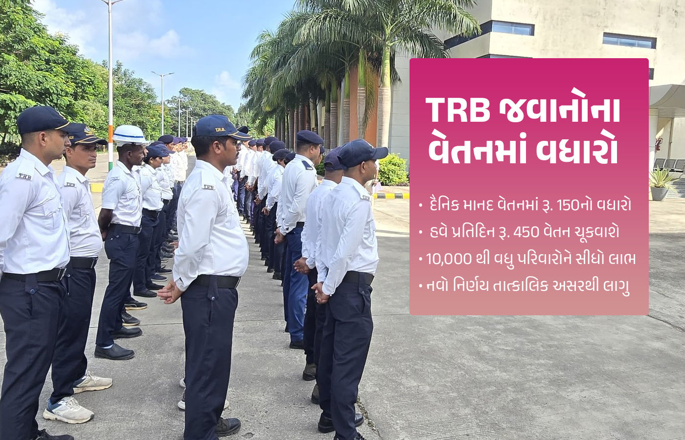 વેતન વધારાનો નવો નિર્ણય આજથી જ અમલી બનશે. રાજ્યના અંદાજે 10,000 થી વધુ TRB જવાનો અને તેમના પરિવારોને આ આર્થિક વધારાનો સીધો લાભ મળશે.