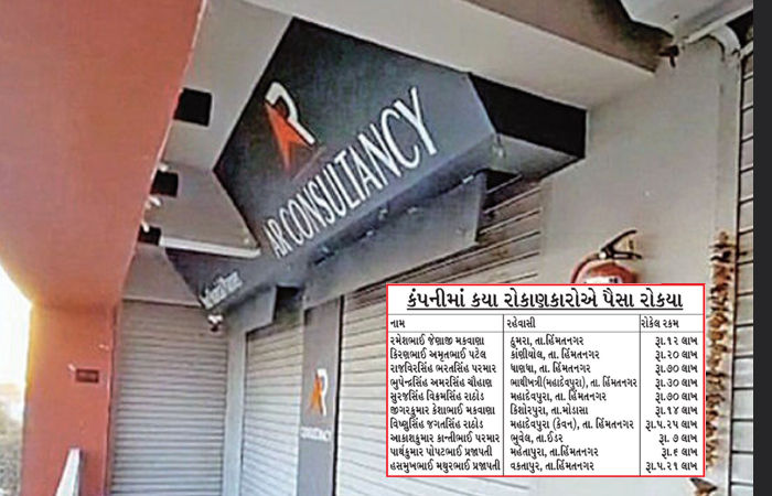 પોલીસ સૂત્રોના જણાવ્યા મુજબ હિંમતનગરના અમરપુરા ખાતે રહેતા અમૃતસિંહ સુખસિંહ મકવાણા અને સુરજસિંહ સુખસિંહ મકવાણાએ એન.એ.આર. કન્સલ્ટન્સી અને એન.એ.આર. કેપીટલ કંપનીમાં માસિક 5% થી 7% જેટલું ઊંચું વ્યાજ આપવાની લાલચમાં રોકાણ કર્યું હતું. કંપનીના સંચાલકોએ અમૃતસિંહને રૂ. 9,50,000 અને સુરજસિંહને રૂ. 8,80,000 ની રકમ પરત આપી ન હતી. આ ઉપરાંત અન્ય 9 રોકાણકારોના પણ મોટી રકમ ફસાયેલી છે.