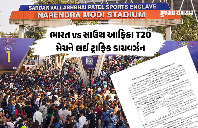 Ahmedabad Modi Stadium Traffic Rules: ક્રિકેટ પ્રેમીઓ જેની આતુરતાથી રાહ જોઈ રહ્યા છે તે ભારત અને સાઉથ આફ્રિકા વચ્ચેની ટી20 મેચ 19/12/2025ના રોજ નરેન્દ્ર મોદી સ્ટેડિયમ, મોટેરા, અમદાવાદમાં રમાશે. હાઇ-વોલ્ટેજ મેચને પગલે સ્ટેડિયમની આસપાસ ક્રિકેટ પ્રેમીઓનો ભારે ધસારો થવાની શક્યતા છે. જેને ધ્યાનમાં રાખીને અમદાવાદ પોલીસ કમિશ્નર દ્વારા જાહેરનામું બહાર પાડી ટ્રાફિક વ્યવસ્થામાં મહત્ત્વના ફેરફાર અને ડાયવર્ઝન જાહેર કરવામાં આવ્યા છે.