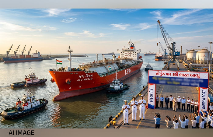 Jag Vikaram kandla News : પશ્ચિમ એશિયામાં અમેરિકા અને ઈરાન વચ્ચે ચાલી રહેલા સંઘર્ષ અને સમુદ્રી નાકાબંધીના ભય વચ્ચે ભારત માટે રાહતના સમાચાર આવ્યા છે. ભારતીય ધ્વજ ધરાવતું એલપીજી ટેન્કર 'જગ વિક્રમ' (Jag Vikram) 20 હજાર મેટ્રિક ટન રાંધણ ગેસ (LPG) લઈને આજે બુધવારે ગુજરાતના કંડલા પોર્ટ પર સુરક્ષિત રીતે પહોંચી ગયું છે.