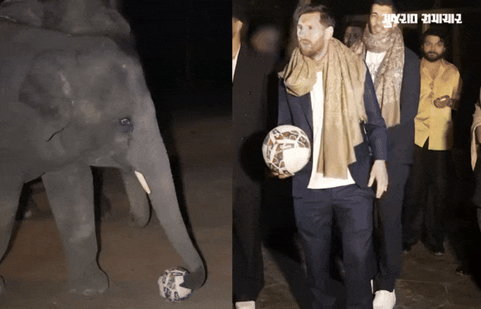હાથીના બચ્ચા (માણેકલાલ) સાથે ફૂટબોલ રમ્યો મેસી