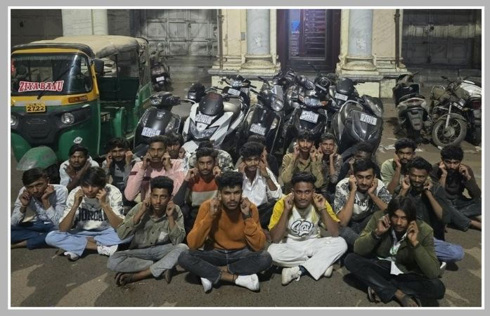 જામનગરના પંચેશ્વર ટાવર, સત્યનારાયણ મંદિર રોડ અને હવાઈ ચોક જેવા વિસ્તારોમાં ટુ-વ્હીલર પર સવાર કેટલાક શખસોએ મર્યાદા ઓળંગી હતી. આ ટોળકી બેફામ ગતિએ વાહનો હંકારી સ્પીડ બ્રેકર પર જોખમી સ્ટંટ કરી રહી હતી. જોરજોરથી ચિચિયારીઓ પાડી સ્થાનિક રહીશોની ઊંઘ હરામ કરી હતી. આ સમગ્ર કરતૂતનો વીડિયો વાઈરલ થતા શહેરીજનોમાં રોષ અને ભય જોવા મળ્યો હતો. વીડિયો વાઈરલ થતા જ જામનગર પોલીસ વિભાગના કમાન્ડ એન્ડ કંટ્રોલ સેન્ટર (નેત્રમ)ની ટીમ હરકતમાં આવી હતી. PSI બી.બી. સિંગલ અને તેમની ટીમે બેડીગેઇટથી હવાઈ ચોક સુધીના કેમેરા ચેક કરી વાહનોના નંબર મેળવ્યા હતા. આ વિગતો સીટી એ. ડિવિઝન પોલીસને સોંપવામાં આવી હતી. PI એન. એ. ચાવડા અને તેમની ટીમે ત્વરિત કાર્યવાહી કરી ગણતરીના કલાકોમાં જ તમામ શખસોને શોધી કાઢ્યા હતા.