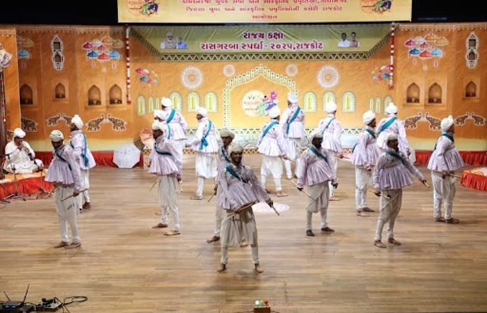 Jamnagar : રાજકોટ સ્થિત હેમુ ગઢવી હોલ ખાતે તાજેતરમાં યોજાયેલી રાજ્યકક્ષાની રાસ-ગરબા સ્પર્ધામાં જામનગર શહેરના શ્રી રાજશક્તિ રાસ મંડળે શાનદાર પ્રદર્શન કરીને પ્રથમ ક્રમાંક હાંસલ કર્યો છે જેના કારણે સમસ્ત સૌરાષ્ટ્રનું ગૌરવ વધ્યું છે. ગુજરાતના રમતગમત, યુવા અને સાંસ્કૃતિક પ્રવૃત્તિઓ વિભાગ દ્વારા આયોજિત આ સ્પર્ધામાં રાજ્યભરના કલાકારોએ ભાગ લઈને ઉત્કૃષ્ટ કલા પ્રદર્શન કર્યું હતું.