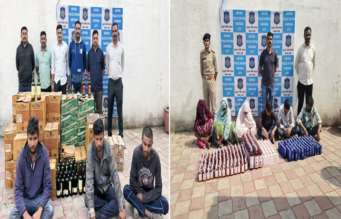Vadodara Liquor Raid : વડોદરા શહેરમાં ગેરકાયદેસર દારૂની હેરાફેરી સામે કપુરાઈ પોલીસ સ્ટેશનની ટીમે બાતમીના આધારે બે અલગ અલગ સ્થળે દરોડા પાડી કુલ રૂ.11.97 લાખથી વધુનો મુદ્દામાલ જપ્ત કરી 9 આરોપીઓને ઝડપી પાડ્યા છે.