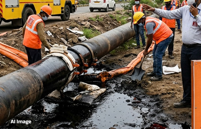 હાલમાં ONGCની ટીમ દ્વારા પાઇપલાઇનના સમારકામની કામગીરી યુદ્ધના ધોરણે ચાલી રહી છે. સદનસીબે આ ઘટનામાં કોઈ જાનહાનિના સમાચાર નથી, પરંતુ રસ્તો બંધ હોવાને કારણે સ્થાનિક વાહનચાલકોને થોડી મુશ્કેલીનો સામનો કરવો પડી રહ્યો છે.