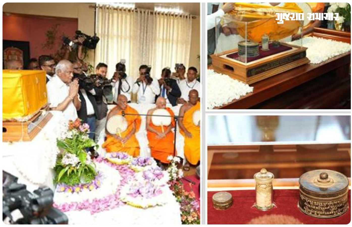 કોલંબો: ભારત અને શ્રીલંકા વચ્ચેના સદીઓ જૂના સાંસ્કૃતિક અને આધ્યાત્મિક સંબંધોમાં આજે એક નવું સુવર્ણ પ્રકરણ ઉમેરાયું છે. ગુજરાતના પ્રખ્યાત બૌદ્ધ સ્થળ દેવની મોરી ખાતેથી મળી આવેલા ભગવાન બુદ્ધના પવિત્ર અવશેષોને શ્રીલંકા લાવવામાં આવ્યા છે. શ્રીલંકાના 78મા સ્વતંત્રતા દિવસના પાવન અવસરે આ અવશેષોનું આગમન થતાં સમગ્ર વાતાવરણ ભક્તિમય બની ગયું છે.