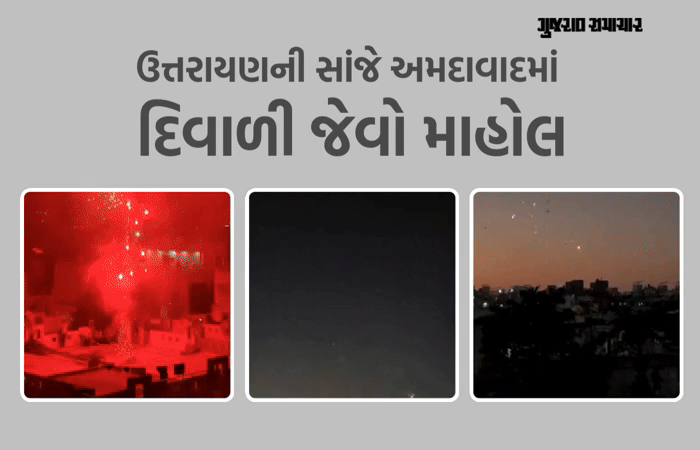 Uttarayan 2026: અમદાવાદમાં આજે વહેલી સવારથી પવન ન હોવા છતાં પતંગ રસિકો ધાબા પર ચઢી ખાણી-પીણીની રંગત જમાવી હતી. જો કે બપોર બાદ પવનની ગતિ થોડી વધતાં ઉત્તરાયણનો માહોલ જામ્યો હતો, આ પછી સાંજ થતાં જ અમદાવાદના મોટાભાગના વિસ્તારોમાં ફટાકડા ફોડવામાં આવ્યા હતા. જેથી ઉત્તરાયણમાં દિવાળી જેવો માહોલ જોવા મળ્યો હતો, શહેરનું આકાશ રંગબેરંગી આતશબાજીથી ગુંજી ઉઠ્યું હતું.