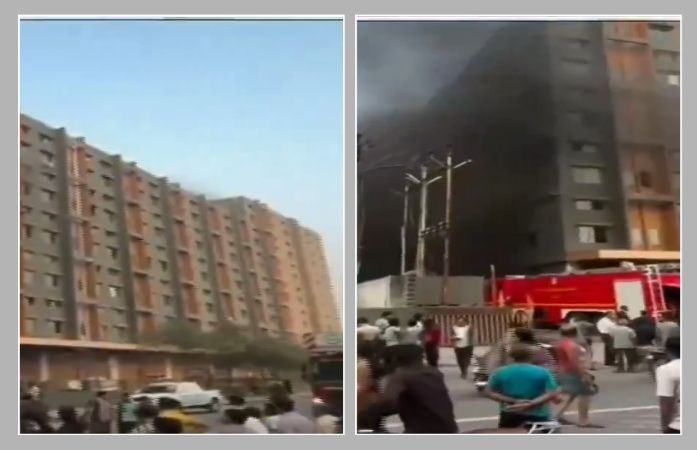 Surat Textile Market Fire: સુરતમાં ફરી એકવાર આગની ગંભીર ઘટના સામે આવી છે. શહેરના પુણા વિસ્તારમાં આવેલી નિધિ ટેક્સટાઇલ માર્કેટમાં રવિવારે (આઠમી ફેબ્રુઆરી) વહેલી સવારે અચાનક ભીષણ આગ ફાટી નીકળી હતી. માર્કેટના ગ્રાઉન્ડ ફ્લોર પર આવેલા ખાતામાં લાગેલી આગે જોતજોતામાં વિકરાળ સ્વરૂપ ધારણ કરી લેતા સમગ્ર વિસ્તારમાં અફરાતફરીનો માહોલ સર્જાયો હતો.