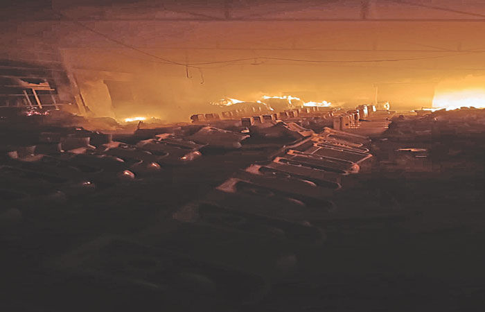 સિરામિક કારખાનામાં સંગ્રહિત સેનિટરી વેરની આઇટમો, પેકિંગ મટીરીયલ, રો મટીરીયલ બળીને ખાખ