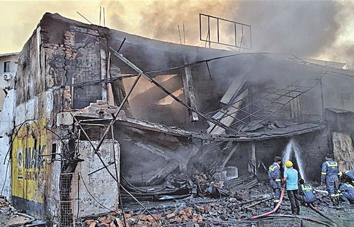 મેજર કોલ જાહેર ઃ ૮ ફાયર ફાઈટરોએ ૨.૫ લાખ લિટર પાણી અને ફોમનો મારો ચલાવી આગ પર કાબૂ મેળવ્યો