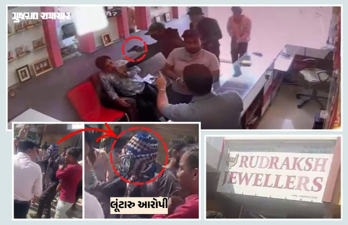 Mundra Jewelry Shop Loot Attempt: કચ્છના મુન્દ્રામાં ધોળા દિવસે ફાયરિંગની ઘટના સામે આવી છે. મુન્દ્રા શહેરમાં આજે(9 ફેબ્રુઆરી, 2026) બારોઇ રોડ પર આવેલા 'રૂદ્રાક્ષ જ્વેલર્સ'માં બંદૂકધારી લૂંટારુઓ ઘૂસ્યા હતા. બાઈકમાં આવેલા ત્રણ વ્યક્તિ લૂંટ કરવા જ્વેલર્સમાં પ્રવેશ્યા હતા. આ દરમિયાન દુકાનમાં સોની વેપારી પણ હાજર હતા. સોનાના દાગીના લૂંટ કરતાં વેપારીએ હિંમત દાખવીને એક શખસને દબોચ્યો હતો. તેવામાં અન્ય લૂંટારુ ફાયરિંગ કર્યું હોવાનું જણાય છે. આ ઘટનામાં એક શખસને ઈજા પહોંચે છે, જ્યારે અન્ય બે આરોપી ભાગવામાં સફળ રહે છે. ફાયરિંગની ઘટનાને પગલે પોલીસ ઘટનાસ્થળે પહોંચીને એક આરોપીને ઝડપી પાડે છે. પોલીસે આ મામલે ગુનો નોંધીને ફરાર બે આરોપીની શોધખોળ હાથ ધરી છે.