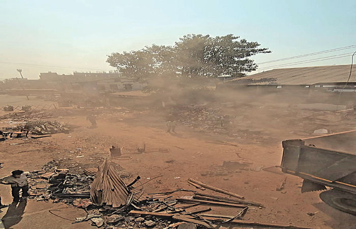 નડિયાદ : નડિયાદ શહેરના વ્યસ્ત ગણાતા સંતરામ રોડ પર સ્થિત સરદાર ભુવનને તોડી પાડયા બાદ છેલ્લા ૪ દિવસથી કાટમાળ હટાવવાની કામગીરી ચાલી રહી છે, પરંતુ આ કામગીરી આસપાસના રહેવાસીઓ અને વેપારીઓ માટે આફત સાબિત થઈ રહી છે. ડિમોલિશન સ્થળેથી મોટા પ્રમાણમાં ધૂળની ડમરીઓ ઉડી રહી છે, જેના કારણે સમગ્ર વિસ્તારમાં વાયુ પ્રદૂષણ ફેલાયું છે અને શ્વાસ લેવામાં તકલીફ પડતી હોવાની ફરિયાદો ઉઠી છે. આશ્ચર્યની વાત એ છે કે, સામાન્ય નાગરિકોને બાંધકામ સમયે નિયમોનું પાલન કરવાની સૂચના આપતું તંત્ર પોતે જ પોતાના જારી કરેલા નોટિફિકેશનનું ઉલ્લંઘન કરી રહ્યું છે.