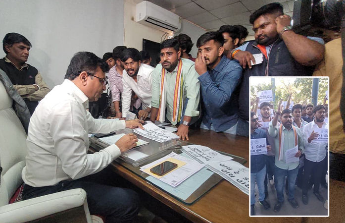 Ahmedabad NSUI News: અમદાવાદ શહેરની અનેક ખાનગી સ્કૂલો દ્વારા વાલીઓ પર સ્વેટર અને યુનિફોર્મની ખરીદીને લઈ દબાણ કરવામાં આવતું હોવાની વાલીઓ દ્વારા ફરિયાદો ઊભી થઈ છે. આ મુદ્દે આજે વિદ્યાર્થી સંગઠન NSUI દ્વારા ઉગ્ર વિરોધ પ્રદર્શન કરવામાં આવ્યું હતું. NSUIના કાર્યકરોએ અમદાવાદ ડીઈઓ કચેરીએ પહોંચીને ઉગ્ર સૂત્રોચ્ચાર કર્યા હતા અને ખાનગી સ્કૂલોની જોહુકમી બંધ કરાવવા માટે ઉગ્ર રજૂઆત કરી હતી.