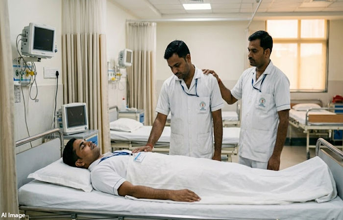 પ્રદીપભાઈએ તરત જ પલ્સ ચેક કરતા નબળી જણાતા હોસ્પિટલના સ્ટાફને જાણ કરી અને તેમને ઇમરજન્સી વોર્ડમાં ખસેડવામાં આવ્યા હતા. પરંતુ સારવાર દરમિયાન તેનું મૃત્યુ નિપજ્યું હતું.