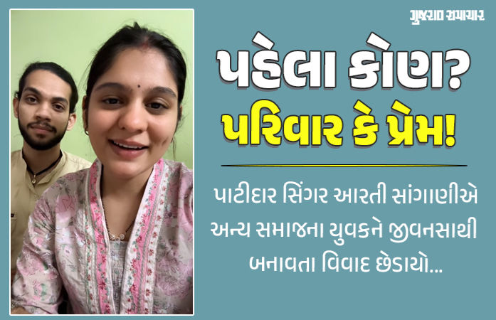 Aarti Sangani Love Marriage: હજુ તો કિંજલ દવેના આંતરજ્ઞાતિય યુવક સાથે સગાઈનો મામલો માંડ શાંત પડ્યો છે ત્યાં વધુ એક ગાયક કાલાકારે અન્ય સમાજના યુવક સાથે લગ્ન કરી લેતા વધુ એક વિવાદને હવા મળી છે. સુરતની જાણીતી પાટીદાર સિંગર આરતી સાંગાણીએ પરિવારની નારાજગી અવગણીને તબલા ઉસ્તાદ દેવાંગ ગોહેલ સાથે સાત ફેરા ફરી લીધા છે. જેના કારણે સોશિયલ મીડિયા પર કેટલાક લોકો આરતીના આ નિર્ણયનો જોરશોરથી વિરોધ કરી રહ્યા છે તો કેટલાક લોકો તેને સમર્થન આપી પડકાર સાથે નવું જીવન જીવવાની સલાહ આપી રહ્યા છે.
