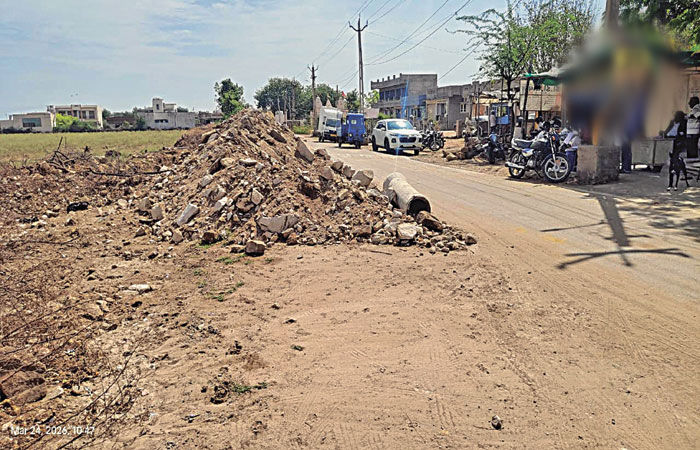 રાત્રિના અંધારામાં માટીના ઢગલાથી અકસ્માતનું જોખમ