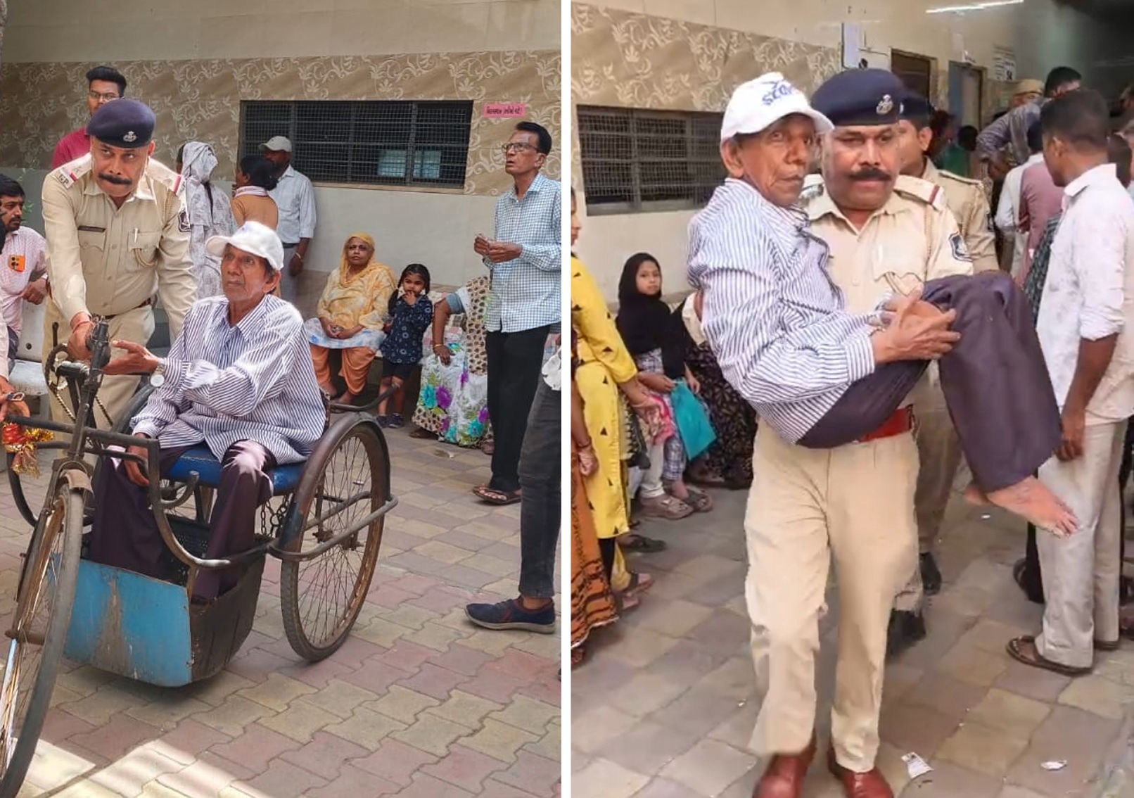 મતદાન શાંતિપૂર્ણ વાતાવરણમાં થાય તે માટે પોલીસ દ્વારા બંદોબસ્ત ગોઠવવામાં આવ્યો હતો. એકંદરે શાંતિપૂર્ણ માહોલમાં થયેલા મતદાન દરમિયાન પોલીસે દિવ્યાંગ, સિનિયર સિટિઝન, બીમાર, અશક્ત લોકોને મતદાન કુટિર સુધી પહોંચાડયા હતા. ગોરવા વિસ્તારમાં એક મતદારને પગે ફ્રેક્ચર હોઇ તેને વ્હિલ ચેરમાં પોલીસ લઇ ગઇ હતી. તાંદલજામાં દિવ્યાંગ મતદારને પોલીસ મદદરૃપ થઇ હતી. વાઘોડિયા રોડ, આજવારોડ, ચાપડ, બિલ, ખલીપુર ગામ વગેરે સ્થળોએ પોલીસે લોકોને મદદરૃપ થઇ પોતાની ફરજ નિભાવી હતી. અજબડી મિલ નજીક એમ.ઇ.એસ. સ્કૂલમાં તો એક દિવ્યાંગ મતદારને પોલીસ જવાન ઉંચકીને કુટિર સુધી લઇ ગયો હતો. તેવી જ રીતે કિશનવાડી વિસ્તારમાં સરકારી સ્કૂલમાં મતદાન કરવા આવેલી વયોવૃદ્ધ મહિલાને પણ પોલીસ વ્હિલ ચેરમાં કુટિર સુધી લઇ ગઇ હતી.