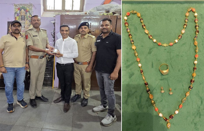 Jamnagar Police : જામનગરના સ્વસ્તિક સોસાયટીમાં રહેતા અને ચાંદી બજાર વિસ્તારમાં સોના ચાંદીના ઘરેણાનો શોરૂમ ધરાવતા સોની વેપારી પોતાના રૂપિયા સાડા છ લાખના દાગીના ભરેલું પાકીટ એક રિક્ષામાં ભૂલી ગયા હતા. પોલીસે તેરા તુજકો અર્પણ પ્રોગ્રામ અંતર્ગત રિક્ષાચાલકને શોધી કાઢ્યા બાદ વેપારીને તેના સોના ચાંદીના દાગીના પરત અપાવ્યા હતા જેથી વેપારીએ પોલીસ તંત્રનો આભાર માન્યો હતો.