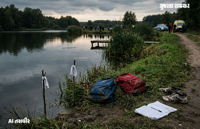 Porbandar News: પોરબંદરના રાણા રોજીવડા ગામે આજે શનિવારે હ્રદય કંપાવે તેવી ઘટના ઘટી છે. શાળાએથી પરત ફરતી વેળાએ 'નેસડા તળાવ'માંમાં ન્હાવા પડેલા બે માસૂમ કિશોરોનો ડૂબી જવાથી જીવ ગયો છે. મૃતક સુમિત સોલંકી તેની 5 બહેનો વચ્ચેનો એકનો એક ભાઈ હતો. બંને પરિવાર પર અણધારી આફત આવી પડતાં પરિવાર અને પંથકમાં શોકનો માહોલ છવાયો છે.