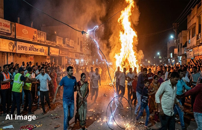 Vadodara Holi : વડોદરા જિલ્લાના કરજણના સંતોષનગર પાસે પ્રગટાવાયેલી હોળીની પ્રજ્વલિત આગ ઉંચે સુધી વીજ નિગમ ઇલેક્ટ્રીક લાઈન પર લાગેલા તારને સ્પર્શી હતી. પરિણામે ચાલુ વીજ પ્રવાહનો તાર અચાનક તુટતા લોકોમાં ભય અને અફરાતફરીનો માહોલ સર્જાયો હતો.