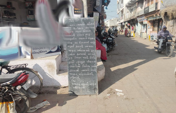 જોખમી ઘાસ ઉગી નીકળ્યું છે. અનેક રજૂઆતો છતાં પરિણામ ન મળતા, ગામની જાગૃત મહિલાઓએ મુખ્ય બજારના ગાંધી ચોકમાં વિરોધ દર્શાવતા બોર્ડ