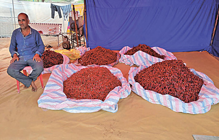 ધ્રાંગધ્રા : ગૃહિણીઓની રસોઈને સ્વાદિષ્ટ બનાવતાં તેજાના ગરમ મસાલા સહિત લાલ ચટક મરચાની સિઝન ધીમેધીમે હવે ધમધમવા લાગી છે. જોકે ચાલુ વર્ષે લાલચટક મચરામાં લાલચોળ તેજી જોવા મળતાં ગૃહિણીઓનું બજેટ ખોરવાઈ રહ્યું છે. ઉનાળાની ગરમીની શરૂઆત થતાંની સાથે જ લોકો બારમાસી ખાદ્યપદાર્થોની ચીજવસ્તુઓ ભરવાની તૈયારીઓમાં વ્યસ્ત બની જાય છે ત્યારે પોષ માસના મધ્યમભાગમાં ખાસ કરીને શહેરની ગૃહિણીઓ તેજાના, ગરમ મમસાલા સહિત લાલ મચરું ખરીદવાની તૈયારીઓ કરવા લાગી જાય છે.