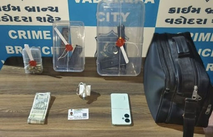 વડોદરા સેન્ટ્રલ એસટી ડેપો ખાતે આવેલા ઈન એન્ડ આઉટ ડોરમેટરી નામના ગેસ્ટ હાઉસમાં કિરીટ પટેલ નામનું એક શખ્સ રિવોલ્વર લઈને રોકાયો હોવાની વિગતો મળતા ક્રાઈમ બ્રાન્ચે દરોડો પાડ્યો હતો.