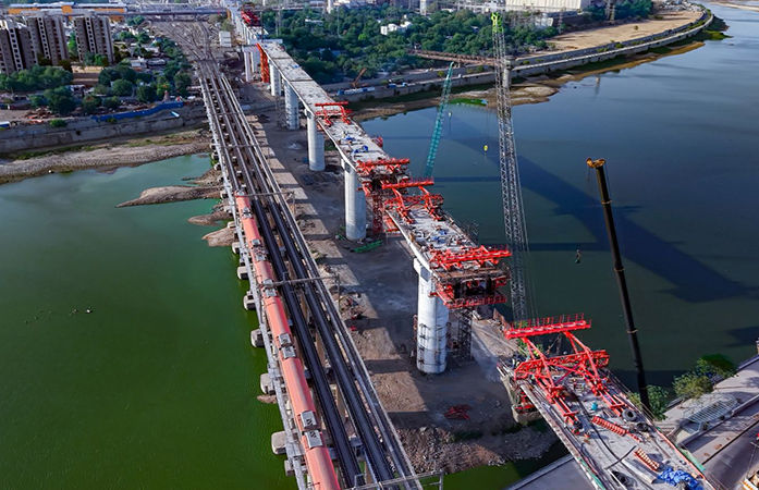 પુલના પાયા અને સબસ્ટ્રક્ચરનું તમામ કામ પૂર્ણ થઈ ગયું છે. 76 મીટરના ત્રણ સ્પાન તૈયાર થઈ ચૂક્યા છે, જ્યારે બાકીના સ્પાન અને સેગમેન્ટ કાસ્ટિંગની કામગીરી અત્યારે યુદ્ધના ધોરણે ચાલી રહી છે.