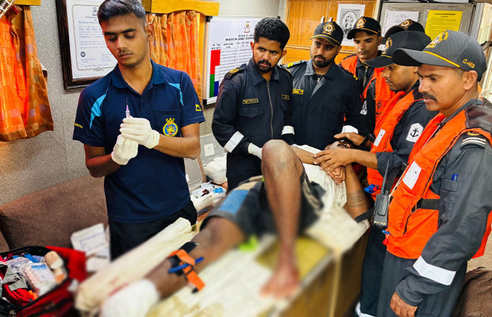 જેમાં કોસ્ટગાર્ડની ટીમ મધદરિયે જઈને ખલાસીને સારવાર કરવામાં આવી હતી. કોસ્ટગાર્ડની ટીમ દ્વારા ઈજાગ્રસ્ત ખલાસીનું રેસ્ક્યૂ કરીને વધુ સારવાર માટે જાફરાબાદ હોસ્પિટલ ખસેડવામાં આવ્યો હતો.