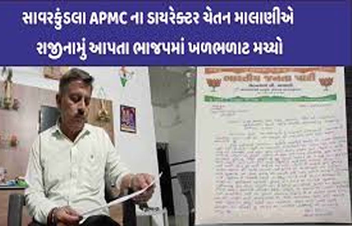 સાવરકુંડલા તાલુકા ભાજપના પૂર્વ મહામંત્રી, સાવરકુંડલા માર્કેટીંગ યાર્ડના ડાયરેક્ટર અને ખડસલી સરપંચ પ્રતિનિધિ ચેતન માલાણીએ ગઈકાલે સહાય પેકેજની જાહેરાત બાદ તુરંત જ રાજીનામું આપી દીધું છે. તેમણે ખેડૂતોના હિતમાં આ પગલું ભરતાં ભાજપના પ્રાથમિક સભ્યપદેથી અમરેલી જિલ્લા ભાજપ પ્રમુખ અતુલ કાનાણીને લેખિતમાં રાજીનામું મોકલી આપ્યું છે. હાલ ભાજપની 'પહેલી વિકેટ ડૂલ' થઈ હોવાની ચર્ચાએ જોર પકડયું છે. હવે ખેડૂતોને અપૂરતી સહાય મળવાના મુદ્દે હવે અન્ય નેતાઓ પણ વિરોધનો સૂર ઉઠાવે તેવી શક્યતા છે.