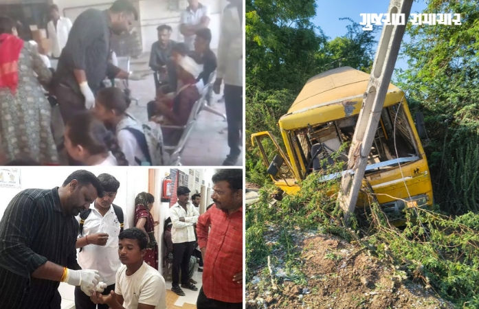 અમરેલીમાં સ્કૂલ બસનો અકસ્માત, 8થી વધુ વિદ્યાર્થીઓને સામાન્ય ઈજા