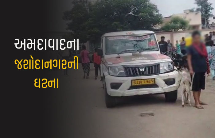 સ્થાનિકોએ એએમસીની ગાડીના કાચ તોડ્યા