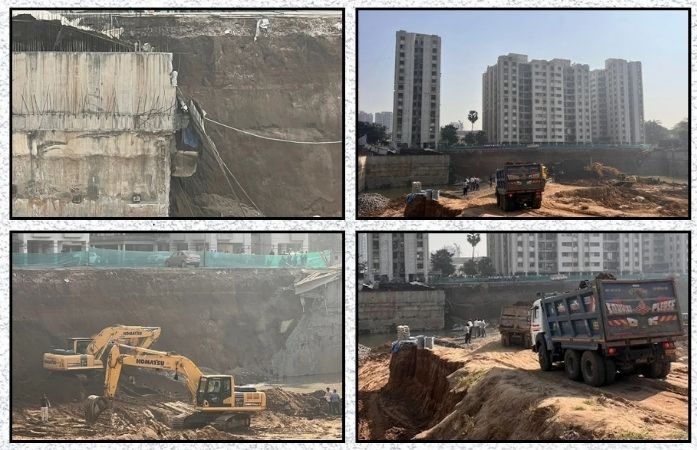 મળતી માહિતી મુજબ, સુરત પાલિકાના અઠવા ઝોનમાં ભીમરાડ વિસ્તારમાં બ્રાઈટસ્ટોન પ્રોજેકટ હેઠળ બિલ્ડીંગ બનાવવાની કામગીરી ચાલી રહી છે. ટી.પી. સ્કીમ નં. 42(ભીમરાડ) ફા. પ્લોટ નં. 60 વાળી જમીનમાં ચાલતા આ પ્રોજેક્ટમાં રેસીડેન્સીયલ કમ કોમર્શિયલ બિલ્ડીંગ માટે મંજૂરી આપવામાં આવી હતી. આ પ્રોજેક્ટમાં એક સાથે ત્રણ બેઝમેન્ટના ખોદાણની કામગીરી ચાલી રહી છે. આ કામગીરી પહેલા માટી ધસી ન પડે તે માટે ડી વોલ પણ બનાવવામાં આવી હતી. પરંતુ કામગીરી દરમિયાન કરવામાં આવેલી બેદરકારીને કારણે ગઈ કાલે મોડી રાત્રે અચાનક માટી ધસી પડી હતી. એક બાદ એક ત્રણેય બેઝમેન્ટમાં માટી ધસી પડવા સાથે ડી વોલ પણ તૂટી ગઈ હતી. આ ગંભીર બેદરકારીને કારણે બાજુમાં આવેલી શિવ રેસીડેન્સીને જોખમ ઊભું થયું હતું.
