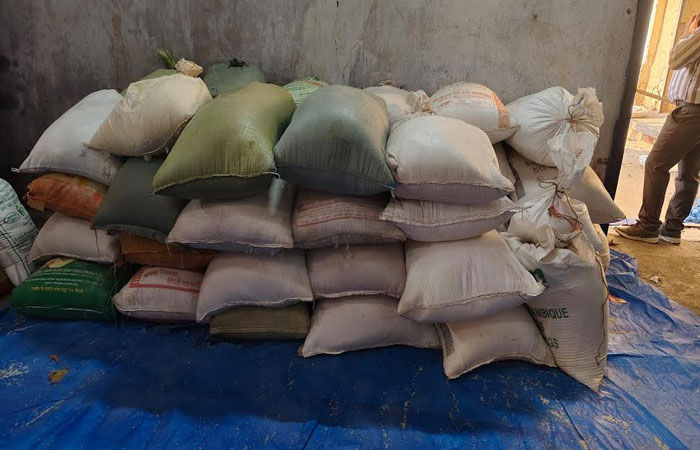 વાહનની પ્રાથમિક તપાસ કરતા તેમાં અનાજનો મોટો જથ્થો ભરેલો હોવાનું માલૂમ