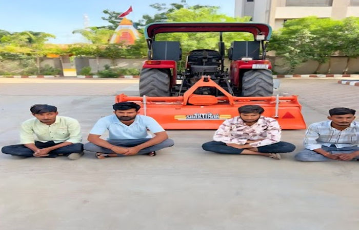 Jamnagar Theft Case : જામજોધપુર પોલીસ દ્વારા ચોરીના ગુનામાં ઝડપી કામગીરી હાથ ધરી છે, અને રૂ.1,37,000 કિંમતનું ચોરાયેલું રોટાવેટર તેમજ ગુનામાં ઉપયોગમાં લેવાયેલા સાધનો સાથે ચાર આરોપીઓને ઝડપી પાડવામાં આવ્યા છે.