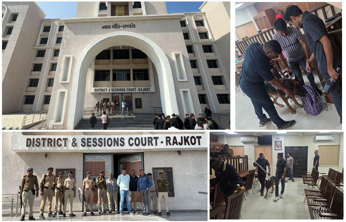રાજકોટ: રાજકોટના જામનગર રોડ પર બનેલી નવી કોર્ટને આરડીએક્સથી ઉડાડી દેવાની ધમકીભર્યો ઇમેઇલ મળતાં એસઓજી, ક્રાઇમ બ્રાંચ, બોમ્બ ડિસ્પોઝલ સ્કવોડ, ડોગ સ્કવોડ, ક્યુઆરટી અને ગાંધીગ્રામ-૨ પોલીસની ટીમ અને અધિકારીઓ ધસી ગયા હતાં. તત્કાળ વકીલો, અસીલો અને જ્યુડીશીયલ ઓફિસરોને સલામત રીતે બહાર મોકલી દીધા બાદ કોર્ટના ખૂણેખૂણાનું ચેકિંગ કરવામાં આવ્યું હતું. ધારણા મુજબ જ ધમકી પોકળ પૂરવાર થઇ હતી. છએક માસ પહેલા પણ રાજકોટ કોર્ટને બોમ્બથી ઉડાડી દેવાની આ જ રીતે ઇમેઇલ દ્વારા ધમકી મળી હતી. રાજ્યની અન્ય કોર્ટોને પણ આ રીતે જ ધમકી મળ્યાનું બહાર આવ્યું છે.