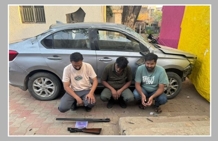 Panchmahal News: પંચમહાલ જિલ્લાના શહેરા તાલુકાના ચલાલી ગામના જંગલ વિસ્તારમાં રાત્રિના સમયે નીલગાયનો શિકાર કરવાનો પ્રયાસ કરી રહેલા ત્રણ શખસોને પોલીસે ઝડપી પાડ્યા હતા. પોલીસનો પીછો જોઈ ભાગવા જતાં શિકારીઓની કાર પલટી ખાઈ ગઈ હતી, જેમાં સદનસીબે તેમનો બચાવ થયો હતો. પોલીસે આ મામલે આર્મ્સ એક્ટ અને વાઈલ્ડ લાઈફ એક્ટ હેઠળ ગુનો નોંધી કાયદેસરની કાર્યવાહી હાથ ધરી છે.
