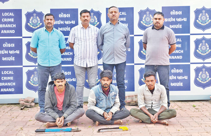 આણંદ જિલ્લાના અલગ અલગ સ્થળોએ તાજેતરમાં હાઈટેન્શન ટ્રાન્સમિશન લાઈનના એલ્યુમિનિયમ વાયરની ચોરીઓ થઈ હોવાના ગુનાઓ બન્યા હતા. જે અંગે આણંદ એલસીબીની અલગ અલગ ટીમો દ્વારા તપાસ હાથ ધરવામાં આવી હતી. દરમિયાન કણભા ગામે સીમ વિસ્તારમાંથી ઈલેક્ટ્રીક વાયરની ચોરી થયેલા ગુનામાં સારોલ ગામના તળપદા ગેંગના માણસો સંડોવાયેલા હોવાનું જાણવા મળ્યું હતું અને તેમાં મુખ્ય સૂત્રધાર ધુળાભાઈ નાનાભાઈ તળપદા અને તેનો દીકરો અર્જુનભાઈ અને તેના કુટુંબના માણસોની સંડોવણી છે. ચોરી કરવા માટે બોલેરો પિકઅપ ડાલાનો ઉપયોગ કરતા હોવાનું જાણવા મળ્યું હતું. સાથે સાથે તેમના મળતીયા માણસોએ અમિયા-દિવેલ રોડ ઉપર કણભા સીમ વિસ્તારમાં ગાડીયા પુરા પ્રાથમિક શાળા નજીક ચોરી કરેલા ઇલેક્ટ્રીક લાઈનના વાયરો સંતાડયા હોવાની અને આ વાયરો લઈ જવા માટે તેઓ સોમવારની રાત્રિના સુમારે ભેગા થવાના હોવાની માહિતી આણંદ એલસીબી પોલીસને મળતા પોલીસની ટીમ એક્શનમાં આવી ગઈ હતી. તળપદા ગેંગના ત્રણ શખ્સો ભેગા થયા છે અને અન્ય માણસોની રાહ જુએ છે તેવી બાતમી પોલીસને મળતા એલસીબી પોલીસની ટીમે બાતમી વાળા સ્થળે તપાસ કરતા ત્રણ શખ્સો શંકાસ્પદ હાલતમાં જોવા મળ્યા હતા અને પોલીસને જોઈ ભાગવાનો પ્રયાસ કરતા પોલીસે તેઓને કોર્ડન કરીને ઝડપી પાડયા હતા.પોલીસે તેઓની અંગ જડતી કરતા તેમની પાસેથી એક લોખંડનું મોટું કટર તથા હેકક્ષો બ્લેડ મળી આવી હતી. જે જગ્યાએ તેઓ હાજર હતા તે અંગે પૂછપરછ કરતા તેઓ ગલ્લા કલાક કરવા લાગ્યા હતા, જેથી પોલીસે જગ્યા ઉપર તપાસ કરતા બે મોટા ગોળ વાળેલા ઈલેક્ટ્રીક વાયરો મળી આવ્યા હતા. જે હાઈટેન્શન ઇલેક્ટ્રીક લાઈનમાં વપરાતા એલ્યુમિનિયમના વાયર હોવાનું જાણવા મળ્યું હતું.